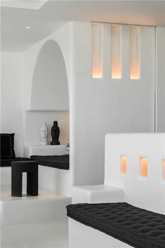 设计永远是一个选择的过程,每一次对空间“主”与“次”的抉择都关乎对功能的理解、价值的抑扬和对美的感知。为了突出艺术品的主体价值,埂上设计用纯粹统一的几何体块去回应艺术品的复杂与多样。