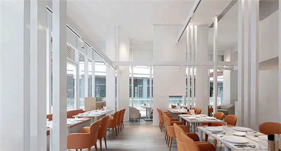 “环绕的玻璃肋已经为我们的‘柱林’形成了第一阶段的包裹感与层次感,与我们在内部因为道路系统设置的‘柱林’形成的其他层次叠加在一起,很容易让人模糊室内与外界的边线。”这种模糊,无形中放大了空间的场地与氛围,视线上通透的用餐环境也会让人有种开阔与放松的心境,从而把人们的注意力引到品味牛排本身上来。