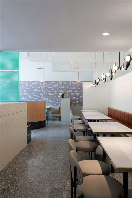 这是一个整改项目,如何在层高只有2.2m,地面、设备、厨房都维持现状的条件下,将原本狭长的空间合理划分成不同的功能区,营造不同以往的用餐氛围,是埂上设计思考的核心。