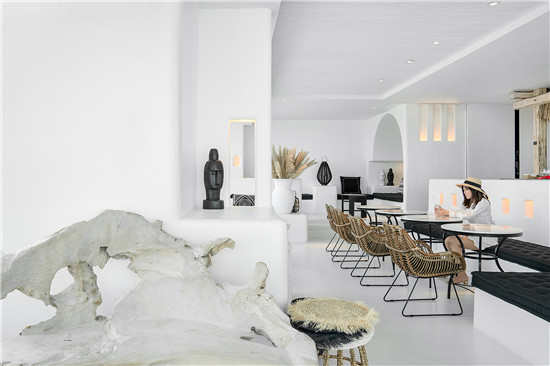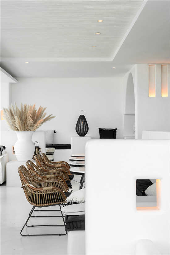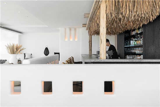 因此,埂上设计根据其出品特点,决定把食物中让人感到放松与愉悦的氛围延续下来。设计师清减颜色和材质的种类,选用了没有锋利边缘的白墙,柔和的灯光隐隐藏在墙中,以竹子、稻草等自然材质的饰物作为点缀,增加了空间的质朴感,使人忽觉身居于一间海边的茅草屋。