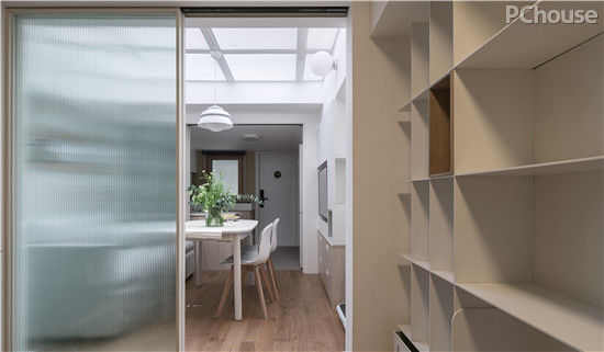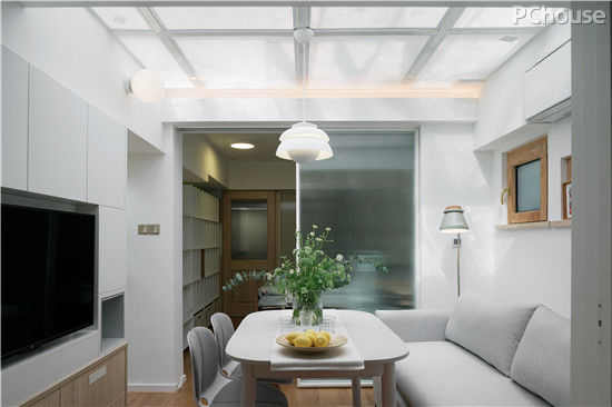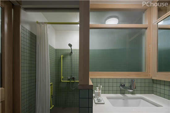 房屋的基础安全得以保证,下一步就是解决原先采光不足的问题,以达到居住的舒适性。针对卫生间采光不足的难题,设计师陈彬打破灯光照明的常规方式,在卫生间无法破墙开窗的情况下,采用日光照明的设计。
