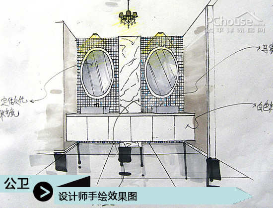 ▼墙面关键字:对称,马赛克瓷砖,定制化妆镜