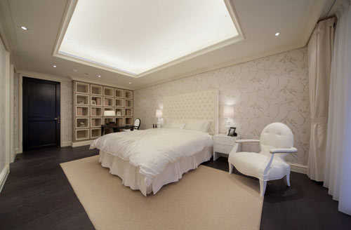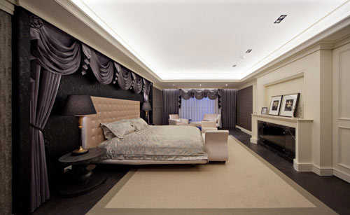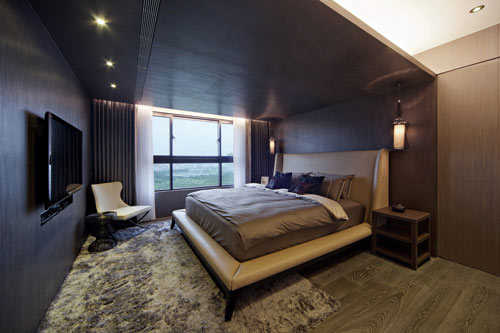 编辑点评:刻意退缩一米深度而造的主卧玄关,黑檀木的线性纹理营造入房气势。