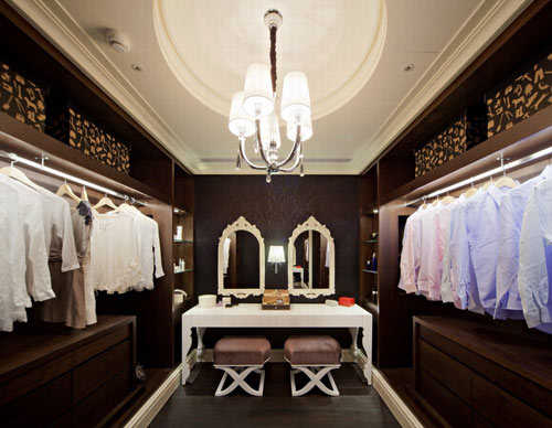 编辑点评:色彩强烈对比下的更衣空间,采用双镜面设计增加了男、女主人的互动机会。