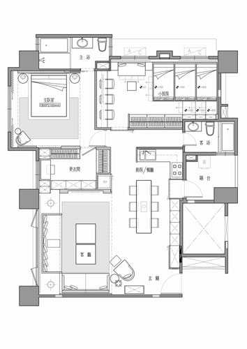 编辑点评:因屋主三位千金有着极佳感情,设计师谢启明将原有的两房打通,规划一大房空间使用。