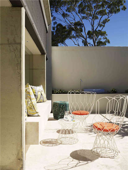 推荐理由:阳台是个感受日照的温暖的地方,设计师充分利用靠近墙面的小台,打造一个室外小卧榻,放上两个抱枕,形成类似沙发的温暖舒适的休息区就布置好了。