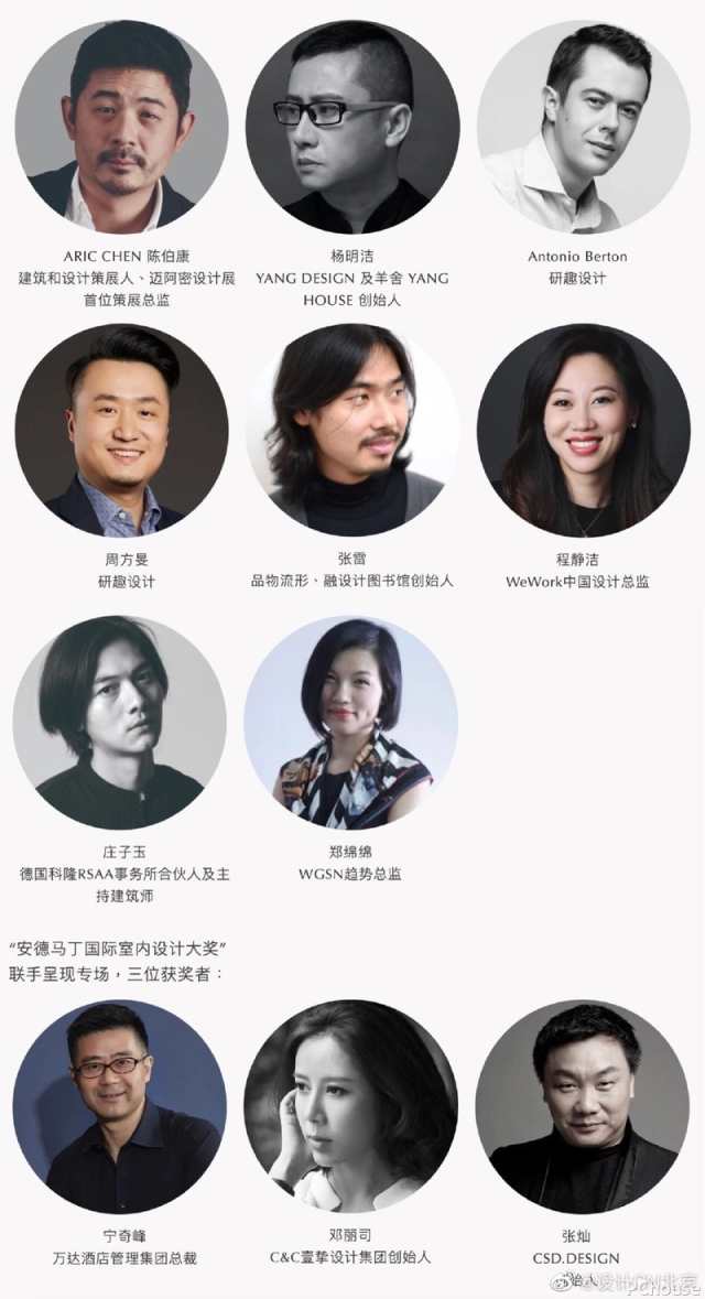 今届展会特邀了诸多国内专家探讨设计趋势、展望未来生活方式。包括WGSN趋势总监郑绵绵、建筑和设计策展人陈伯康、著名设计师、收藏家兼YANG DESIGN创始人杨明洁、Frank Chou Design Studio创始人周宸宸等。