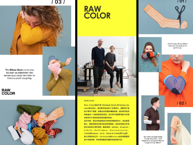 同时,也将现场演示海外设计师 Raw Color 的 Elbow Sock 和 Simon Kämpfer 设计的1米手杖,鼓励观众尝试并体验设计产品,通过“互动性实现”的方式,让不同地域和文化背景的人们,共同模拟疫情期间人与人之间的沟通方式。从而助力人们的行为养成,并树立应对疫情和突发事件的积极态度。