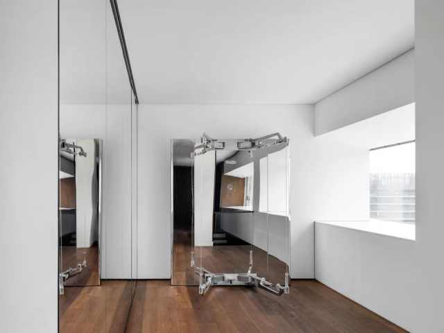 男女主人的衣帽间彼此相邻,又因动线的合理设置保证了使用上的互不干扰。业主品味及工艺本身的魅力皆在细致的划分中悄然流露。密室作为豪宅不可或缺的一项配置,设计师亦心思灵动,将其巧妙融入进来。