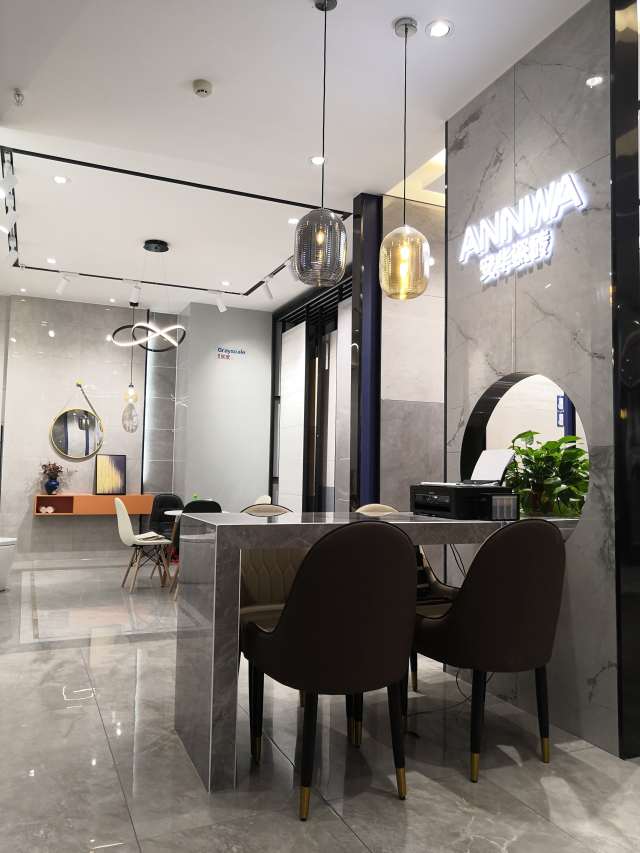 安华瓷砖专注于大理石瓷砖的研发、设计、生产与空间应用,以“时尚安华,更懂你的生活”为品牌主张。安华总部设计师结合品牌理念和消费者实际需求精心设计了睢宁A7现代馆,店面整体大气时尚、现代简约,给人耳目一新的感觉,一进入店面就能感受到满满的国际化设计风格。