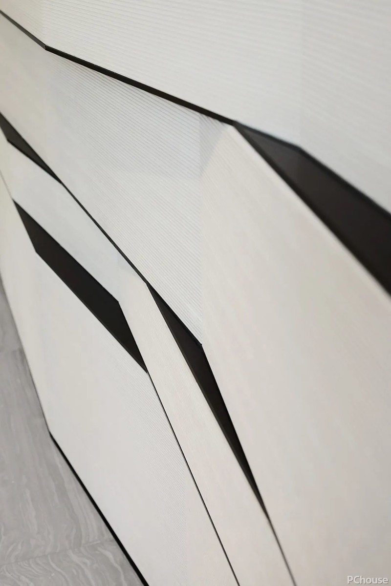 一系列重复层叠的结构,于凹凸错落中,彰显墙面的对比感与变化性。同时关注线、面、体的多维设计哲学,以一种潇洒随性的走向,在韵律与肌理的不断叠加中构建另外一番奇境。