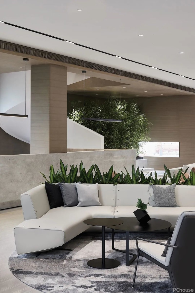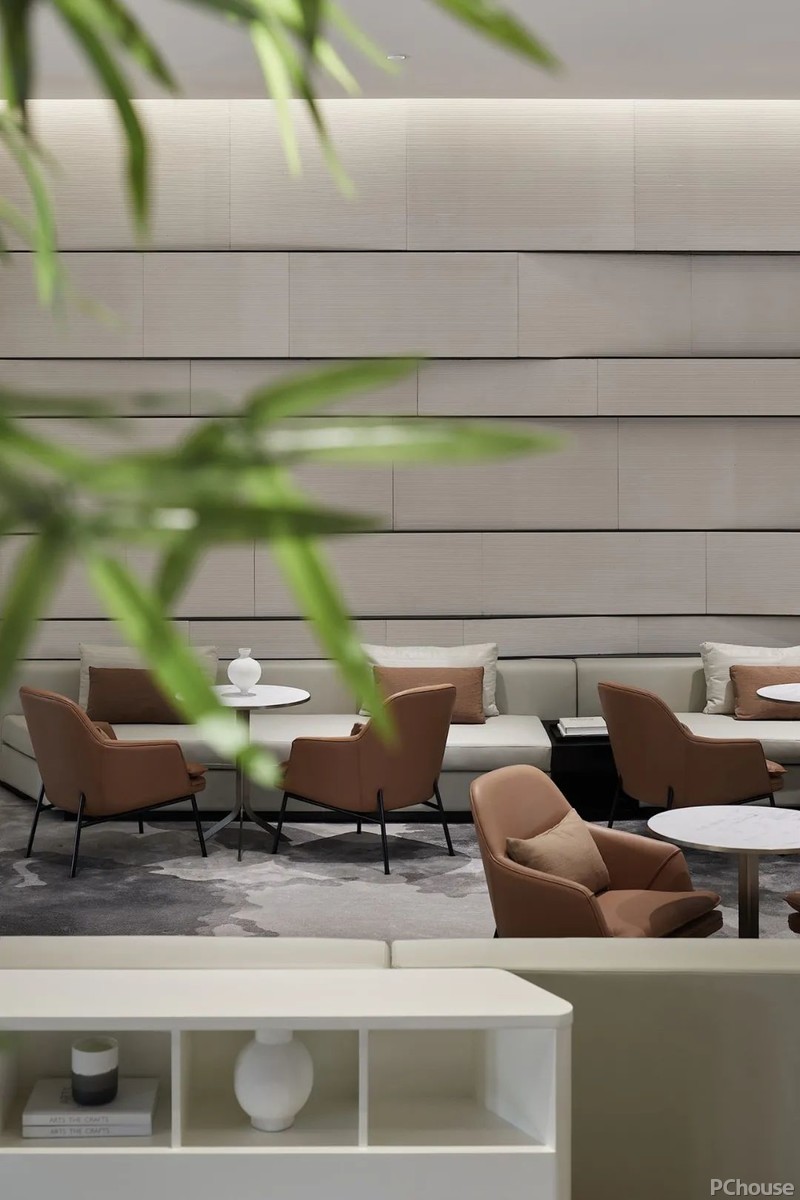 洽谈区呈围合状,高低起伏,不疾不徐,时尚随性的氛围亦在不经意间流露而出。