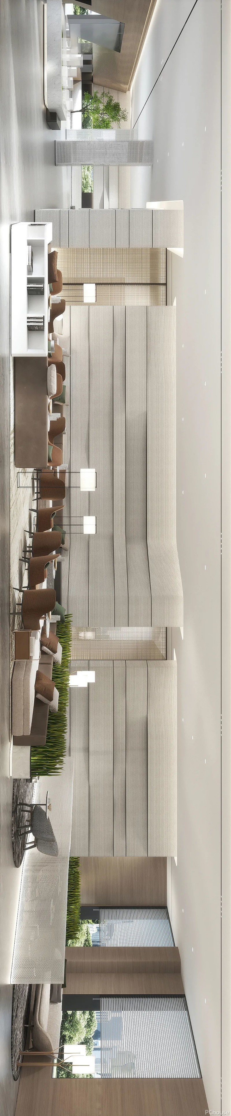 在家具陈设的把控上,设计师也充分梳理人员动线关系,让交谈氛围更显自由、亲近、有序。