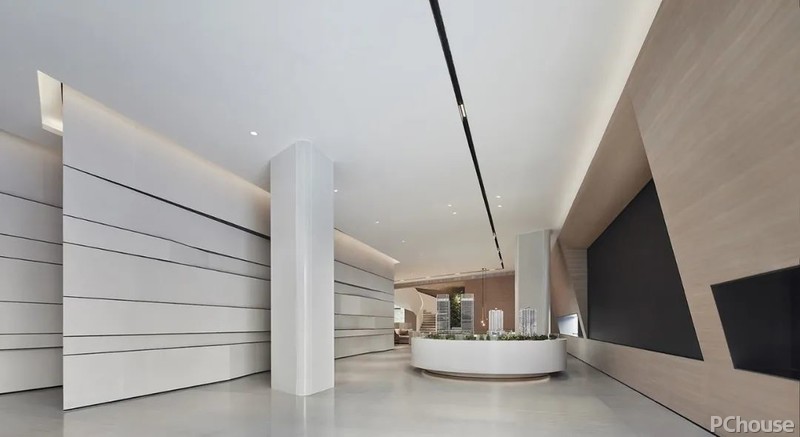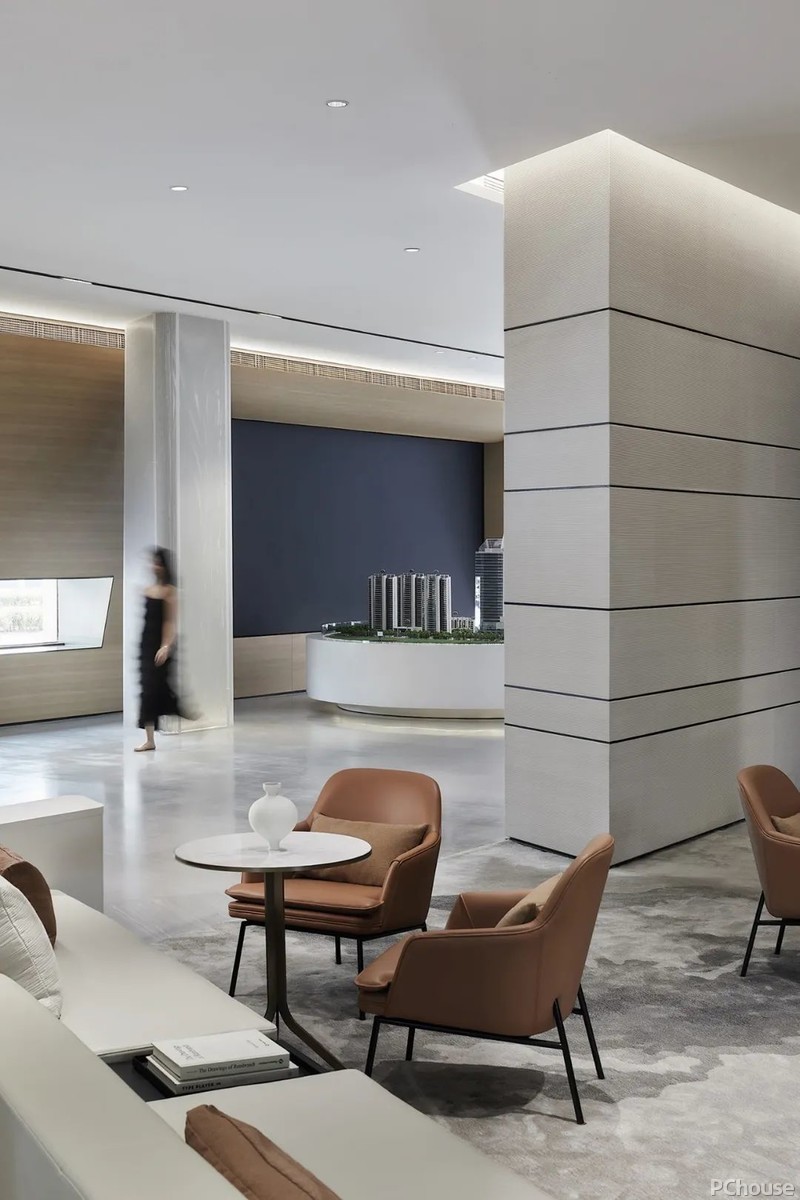 常熟昆承状元里售楼处的室内设计遵从并延续其建筑形制,化繁为简,采用精炼的手法构筑大块面轮廓,让各功能分区合理有序的以递进式铺展开来,将开放互动性贯穿其中,进一步强化整体感以及开阔度。