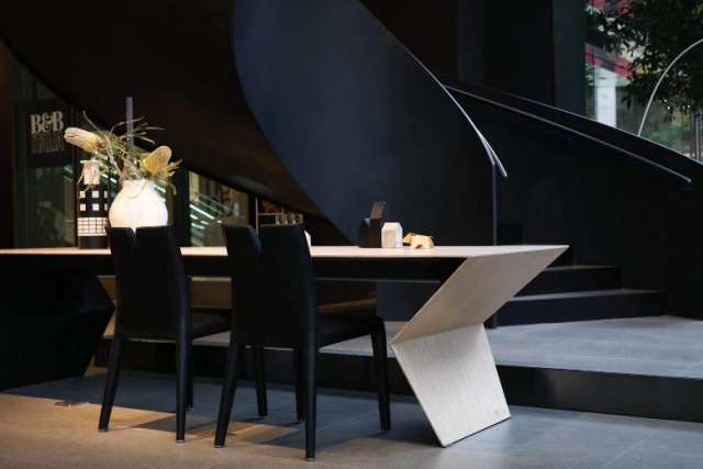 Blitz充满雕塑感的外表之下,轻便而坚固的竹木结构,强调了它极简的几何设计特征,纤细笔直的桌面与迂回曲折的桌脚完美匹配,塑造了整个Blitz的形状。热衷于以纸张模型为设计开端的Mario Bellini,这次以日式折纸为灵感,创造了这款雕塑般的作品。看似拥有强烈个性的它,却可以和谐融入于不同环境中,随时化身为一张餐桌、一张书桌,甚至是一张迎宾桌。