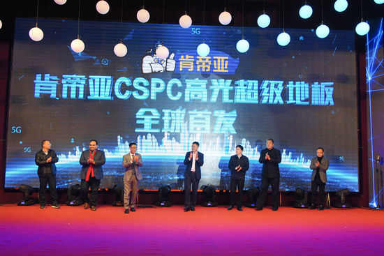 行业协会领导与郦海星董事长共同启动肯帝亚CSPC高光超级地板全球首发仪式