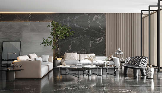 陶瓷大板表面装饰工艺得到了全面升级,能够在一片砖上完整呈现石材纹理的美感,装修出来的整体空间纹理图案效果更加完整和立体,砖面所体现的细节也更加丰富,相对于普通瓷砖有装饰效果更好、纹理更自然,空间视野更开阔。