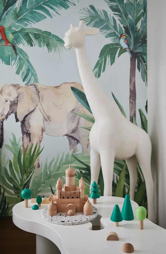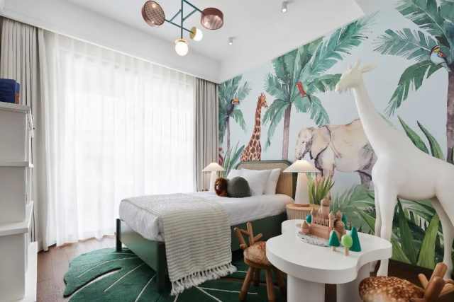 孩童对于自然的想象与好奇是无止境的,儿童房以“森林动物”为主题,通过深与浅的对比色调,拉伸层次的同时,也凸显生动与活泼之感,在有限的环境内迸发出无限可能。