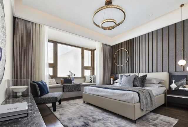 感官层面的情调与喜好、品质与美学等皆可凸显居者的生活态度。主卧床背景以干练的线条实现渐变,软装陈设亦在多元的搭配中展现出节奏感,描绘出优雅舒适的居家蓝图。
