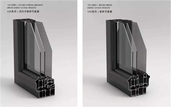 在门窗内外冷热空气交换时,两处断桥处于同一直线,更利于形成一道有效的冷-热桥屏障,可以让空气冷热传导减少。