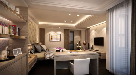 编辑推荐:局部外突的房型给了主卧房打造小书房的空间。