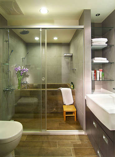 编辑推荐:由于屋主一家人都很喜欢泡澡,设计师特地砌出足以提供三人泡澡的大浴缸,并于墙面使用板岩、地坪挑选木纹地砖,仿日式汤屋的设计手法,增添泡澡的视觉气氛。