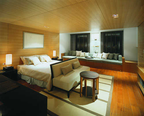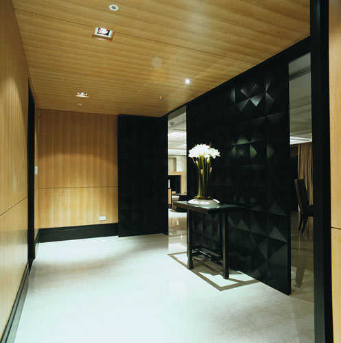 编辑点评:走入柚木皮的沉稳线条,即宣告着公、私领域转换的私密放松。