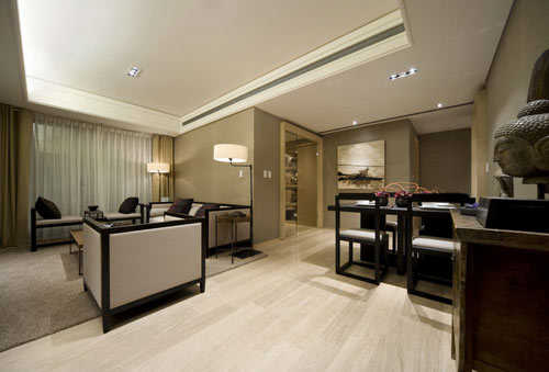 【太平洋家居网 设计频道】本次两套案例,一个是拥有绝美海景的先天优势,设计师依此为主轴将其实品屋定义为市郊度假宅,并把年龄层锁定退休人员,进而衍伸出了中国风情的沉稳面貌;另一个是邻近机场,设计师于主要公领域取其最大公约数做出造型整合,转换空间特色同时也低调刻划了奢华氛围。