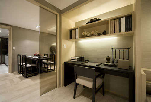 编辑点评:以茶玻破除书房的封闭,餐厅飨食有着三面向的视感开阔。