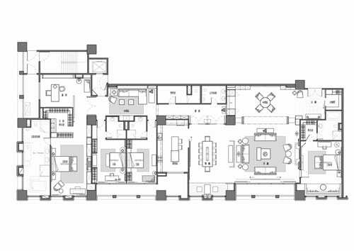 编辑点评:受制于梁柱多且低的限制,设计师谢启明于主要公领域取其最大公约数做出造型整合,转换空间特色同时也低调刻划了奢华氛围。