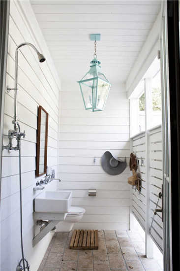 推荐理由:在这个浴室中,设计师巧妙设置隔断安置的位置,即保护如厕者的隐私,也留出上下通风口,这样还不用特地去打造窗户。