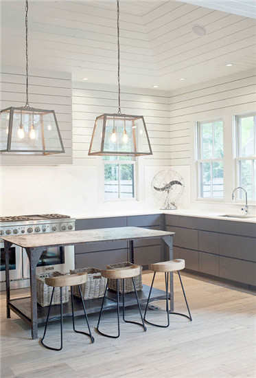 推荐理由:在长方形木桌边上摆放吧台椅,一个简易的吧台便打造好了,在此,吧台也为主人在烹饪时提供更多摆放餐具食物的空间。