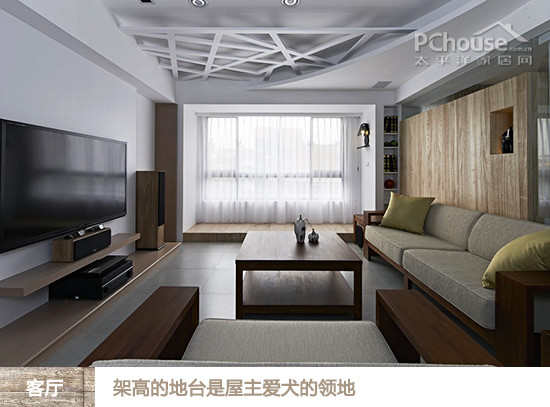 原有的3房格局因不符合屋主的使用需求,于是加大了主卧空间,同时在客厅为屋主爱犬架设出一个地台……【更多】