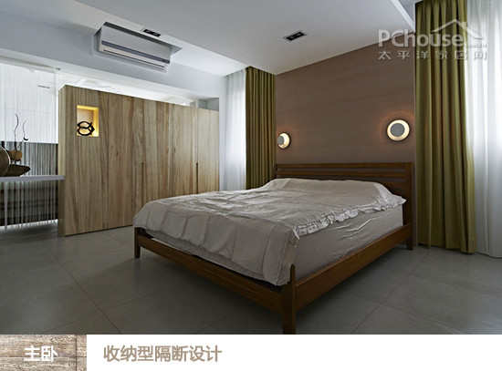 为扩大主卧空间,打通了原来的两个小房间,主卧室与客厅之间利用衣柜作为隔断。