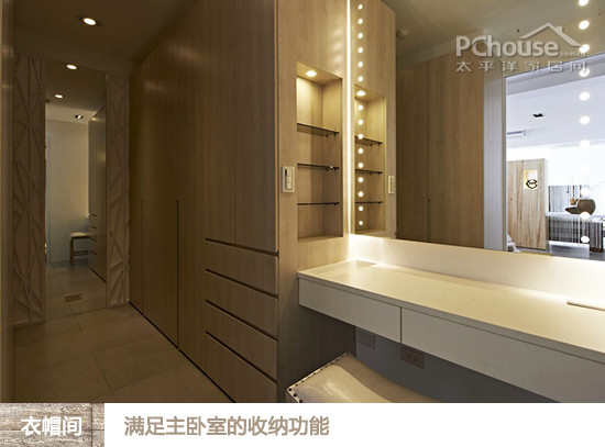 整体衣柜打造出衣帽间,带有门片的柜体满足屋主的收纳习惯。