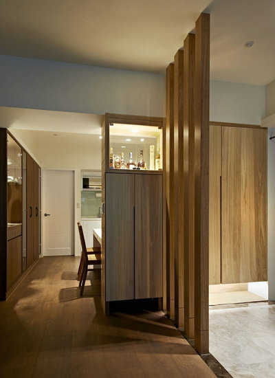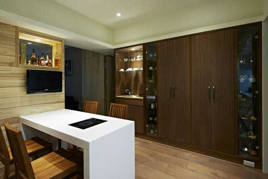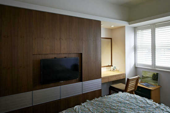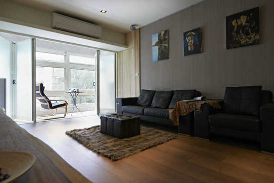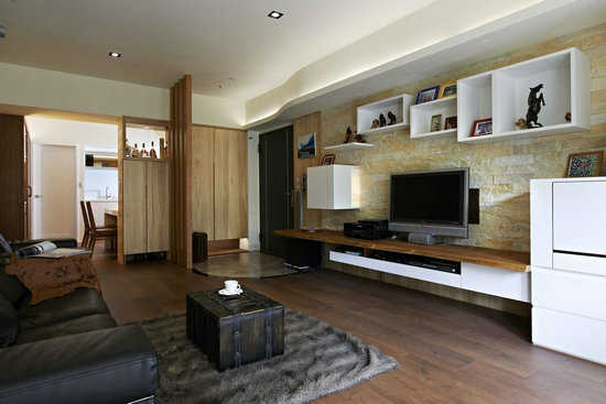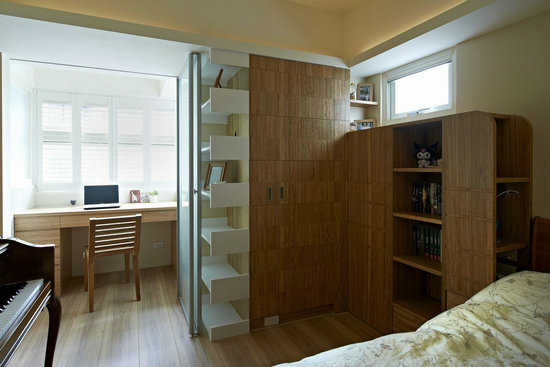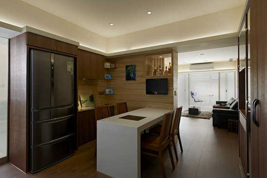 编辑点评:舍弃多余装饰,改采纯粹木纹,融入双面柜概念,让机能利用更加贴近生活习惯。