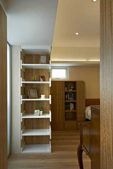 编辑点评:纳入壁面连结表现的收纳配置,让空间立面更显俐落完整;在温润内敛的手感木纹中,感受每一处细节的全心投入。