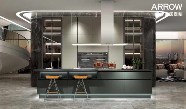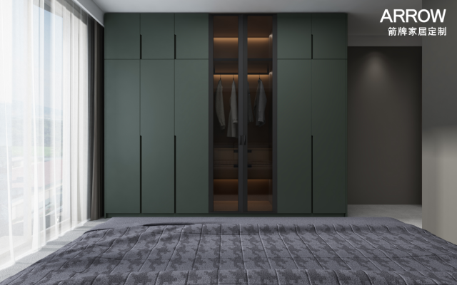 箭牌塞伦系列采用行业创新型家具色彩的暗夜绿油漆作为柜体主打色,低调不失高贵,原创一体化极简拉手延伸出舒适极简兼具实用的产品实例。