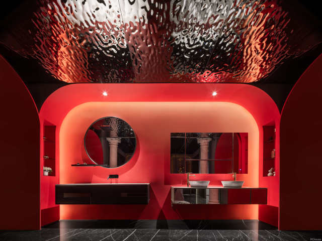 整个空间镜面与金属的碰撞,再加上灯光的点缀,所有反射的景象给整个空间带来意外的惊喜,在视觉体验上有着强大的冲击力,更凸显高级感和律动性。