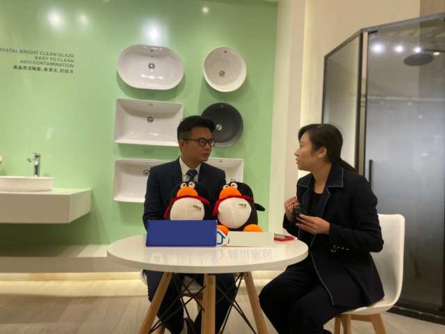 金牌卫浴总经理曾小羚现场接受媒体采访