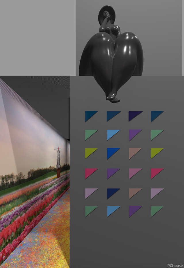这一次皇家帝孚的展厅里面,是把郁金香跟奶酪的元素融入进去。郁金香很直观地可以看到,所有的花卉在墙面、家居摆件上会有一些呈现;奶酪的结构给了设计师很多灵感。整个展厅是用几组盒子,代表千家万户来进行空间的重新组合,更立体,也让空间更具有美妙的设计感,它其实是一栋高楼大厦、或者一个家庭或者是所有家庭的一个缩影,向奶酪的洞洞一样。