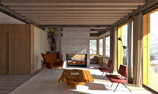 编辑点评:开放式的客厅在玻璃门窗的作用下显得更加开阔和明亮。镂空墙隔断主客厅和角落休闲区,增加了空间的穿透感;多条横梁构成的吊顶延展了空间的视觉效果。
