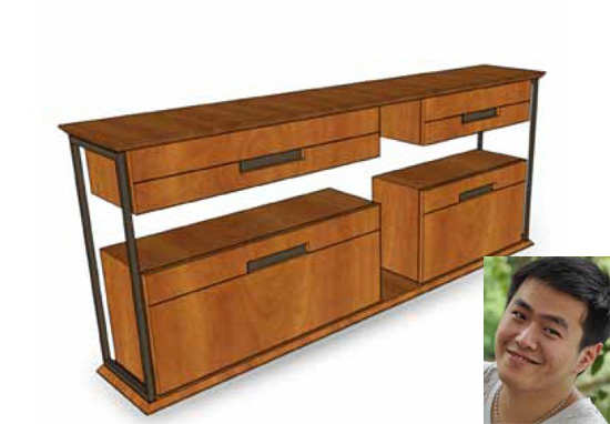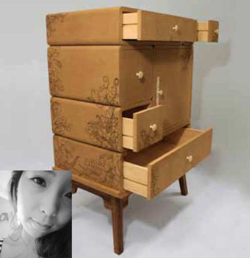 作品“烙印”运用的天然材料——软木,是当下流行的天然材料之一。 “烙印”这个作品以软木作为媒介,将平面手绘在家具中立体表现,并且选用了“烙”的工艺将其印上,也象征着将环保意识“烙”进人的心中。软木和烙画的结合,呈现了触感和视觉上的另类的美。
