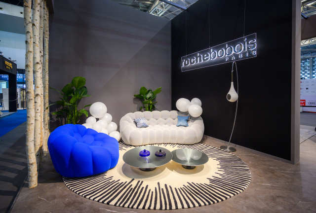 由 Sacha Lakic 设计的 Bubble 沙发 是 Roche Bobois 罗奇堡的核心产品,于2014年首次推出,造型可爱独特,犹如无数气泡拼接而成,面料采用特有Techno 2D和3D。而此次的新款 Bubble 沙发带着全新的4D面料与大家见面,新型的弹力面料中含有黑色针织物,构成蜂窝形状,坚固耐用,抵抗变形,顶部附着一种蜂窝羊毛,非常柔软。Bubble的全新创新面料也被时尚业各家大牌选用,罗奇堡始终将时尚与创新融合,走在设计的前沿。本次展出的是最新一代二代白色Bubble沙发,圆润的造型、柔和的线条、娴熟的设计呈现出法式韵律,是设计、创新、功能与情感的一次完美平衡。为了使参观者与产品有更好的对话,展厅还搭配了同色系白色气球,活泼而又有动感。畅游在浪漫气球氛围中,体会法式艺术生活。