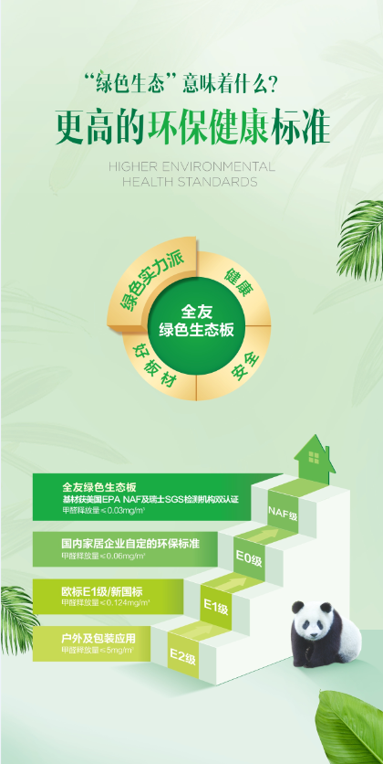 为满足消费者对健康、环保的居家生活环境的需求,全友推出“无醛添加”的绿色生态板,以尖端技术将无甲醛的MDI环保粘合剂运用在板材生产中,经专业测试,全友绿色生态板的甲醛释放含量≤0.016mg/m?,比国标E1级(甲醛释放量≤0.124mg/m?)更低。除此之外,全友还在家居产品上使用了抗菌工艺,经测试,可有效抑制大肠杆菌、金黄色葡萄球菌等多种菌种,抗菌率>99%,能为用户打造更健康的居家生活环境。