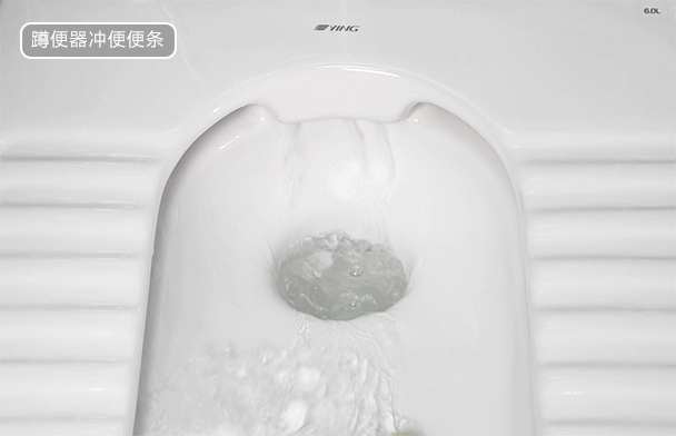 随后,我们在同样具备该技术的蹲便器内放置了模拟真实情况的便便条进行测试,结果显示便便条被水流轻松带走,顺利除污。