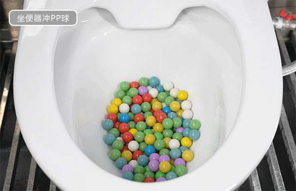 对于一款坐便器来说,不光水流冲力要出色,吸力也非常重要。针对吸力的功能,我们把200个pp球放进使用了双擎智漩技术的坐便器进行排污测试。