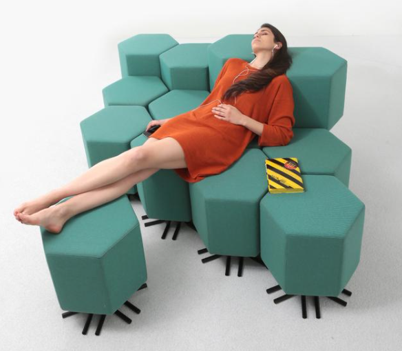 其中每个小六边形座椅既可以充当一个小家具使用,又可以与其他一起组合成功能多样的沙发椅。
