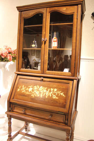 编辑点评:复古风的木质储物柜质感轻盈,其底部的梯形收纳空间大大提升了酒吧的空间感和美感。玻璃柜门使柜内酒类一目了然,方便选取。