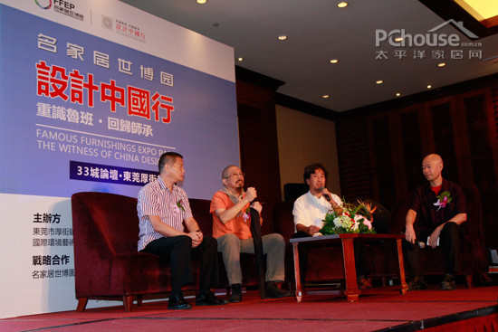来自上海的国内知名资深设计评论家满登(左一),台湾知名设计师曾传杰(左二)、孙建亚(左三)和上海鼎族室内装饰设计有限公司创始人、设计总监吴军宏(左四),就关于“中国设计元素”与“文化品位”为主题展开深刻讨论。